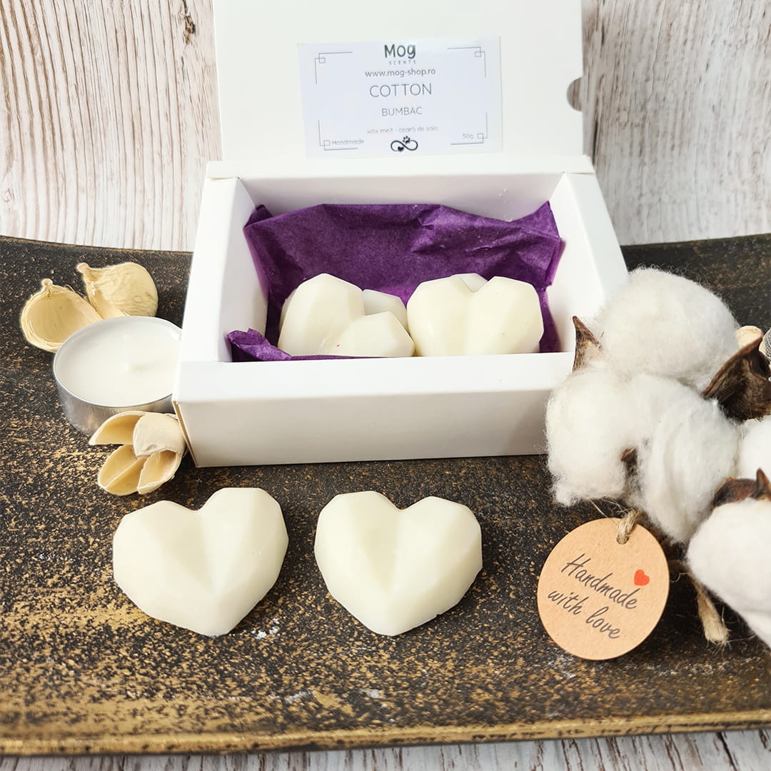 Wax melt din ceara de soia, Cotton – Bumbac, forma Hearts 50gr